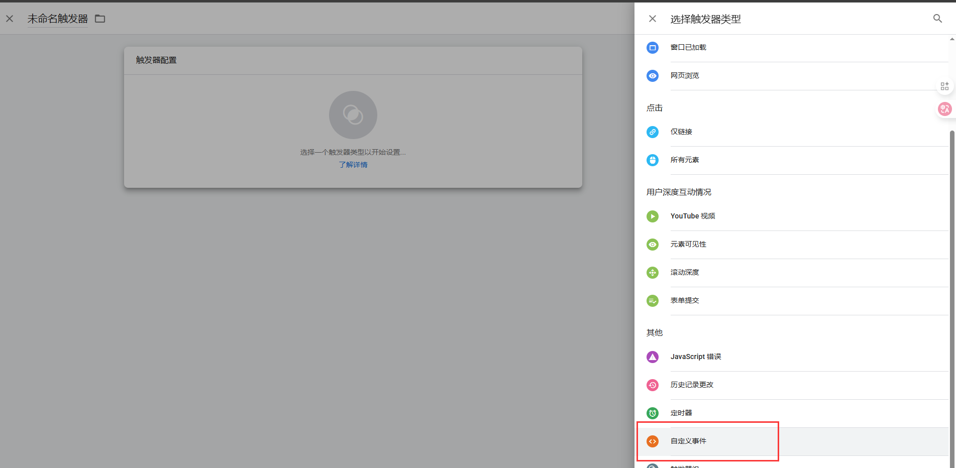 如需要通过gtm给第三方平台推送数据,给您需要的事件创建自定义事件。