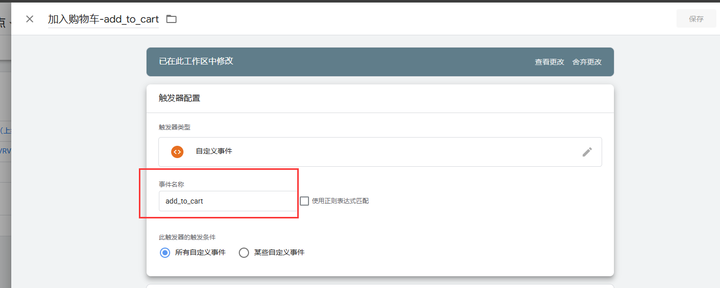 选择“自定义事件”的触发器,复制您需要的事件名称到输入框: