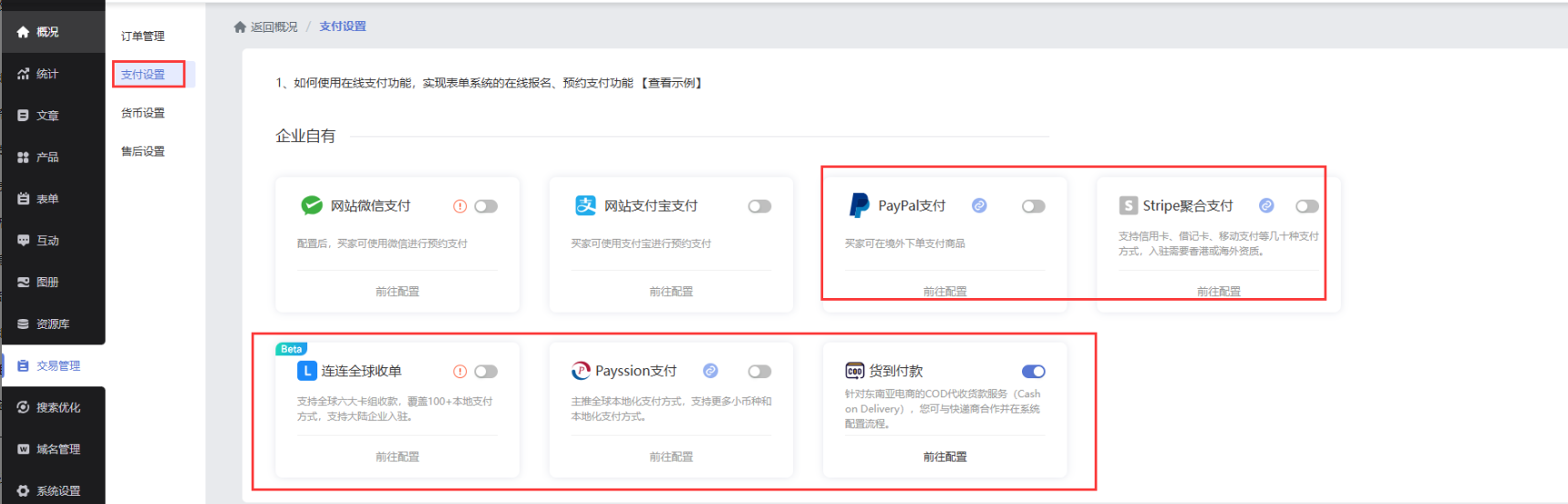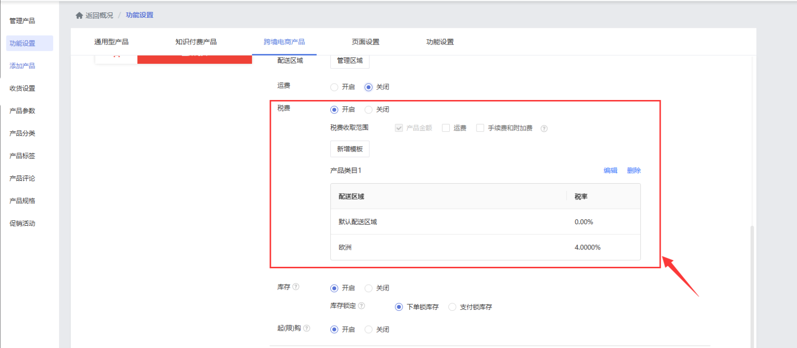 ps:系统默认展示【运费、税费、退换政策、支付方式】,开启相关功能可联动: