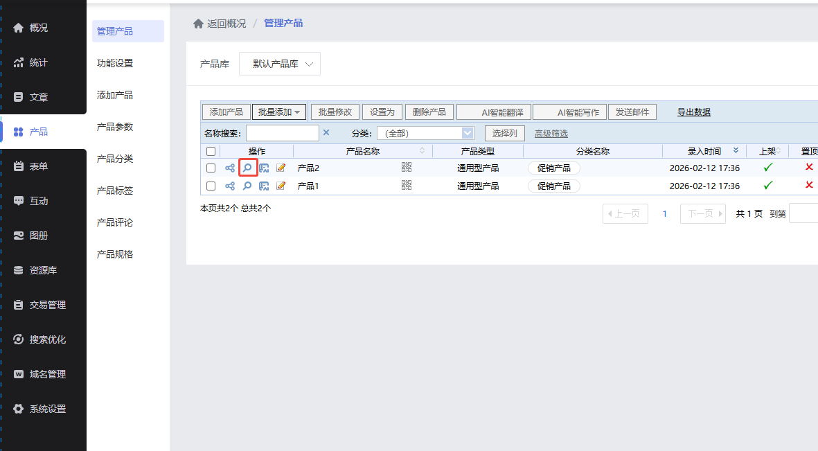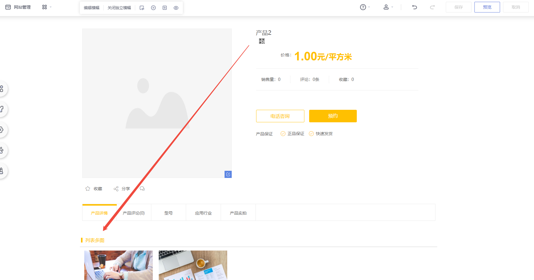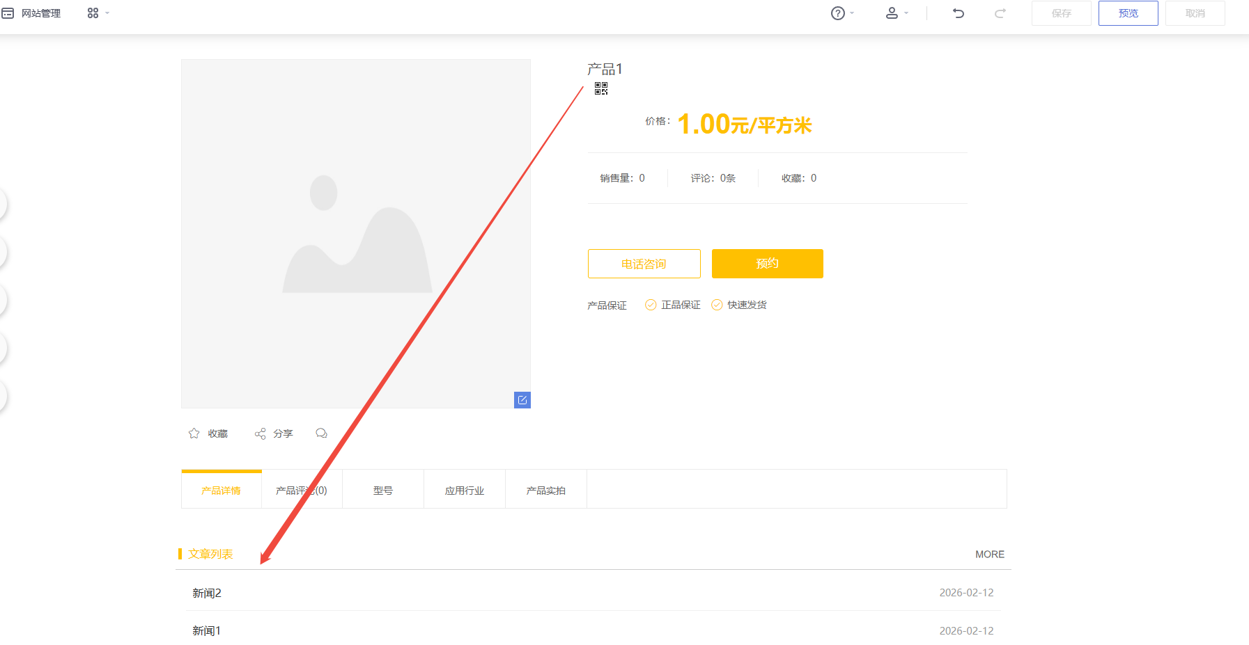 详情页面:用于展示产品、文章等具体内容的系统详情页面。
