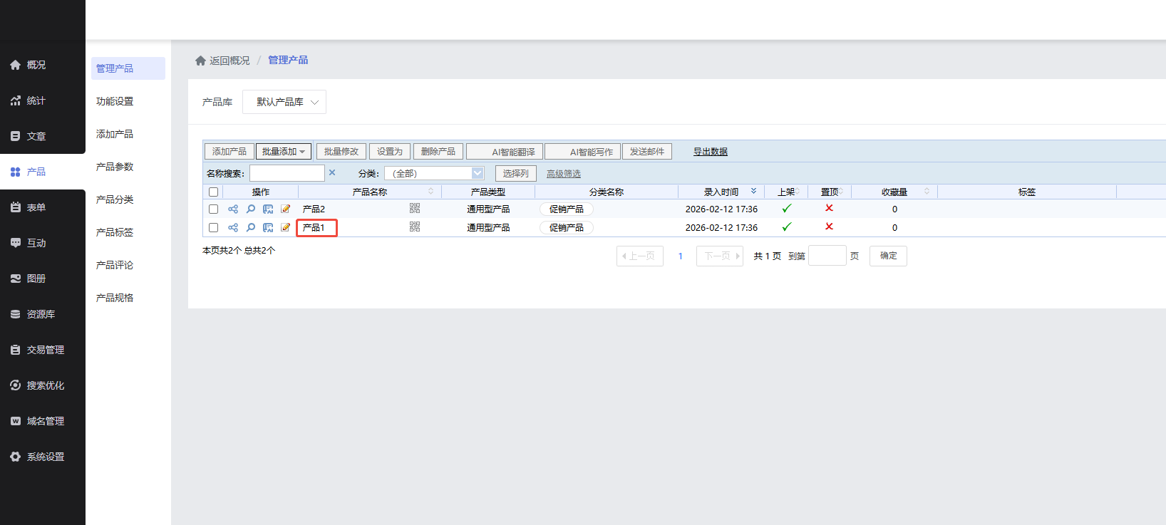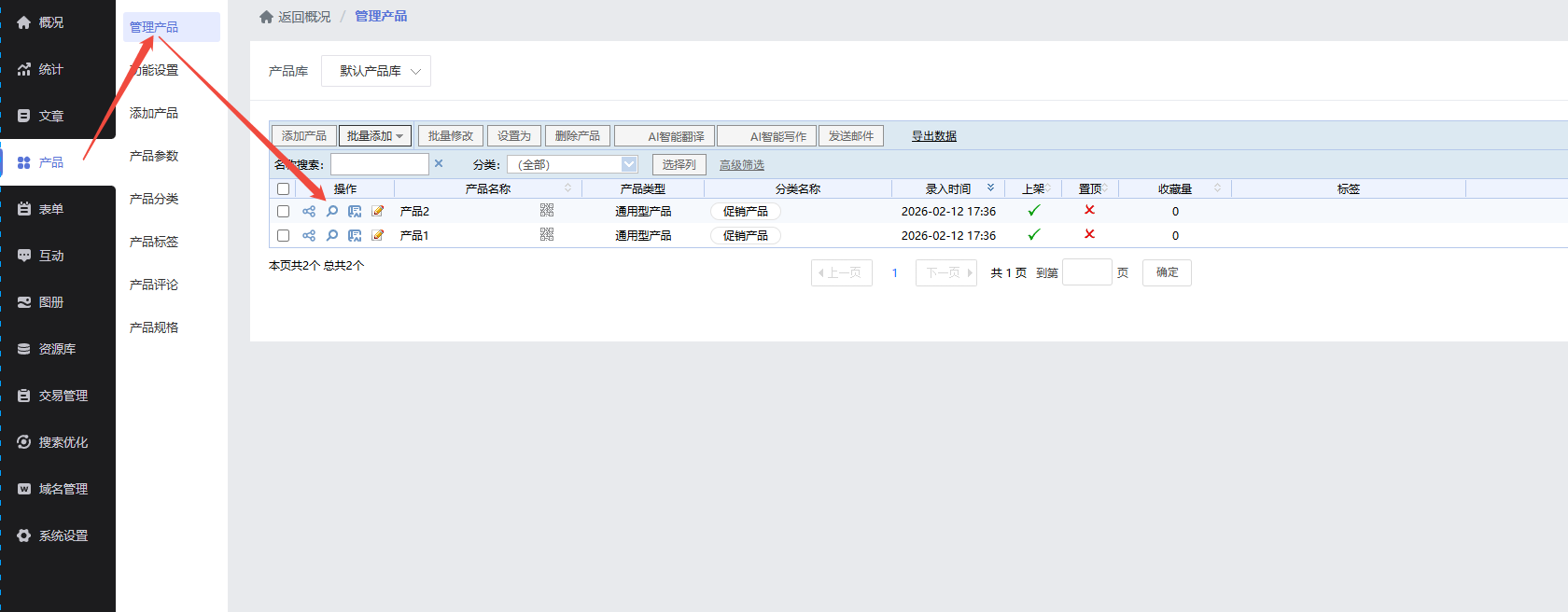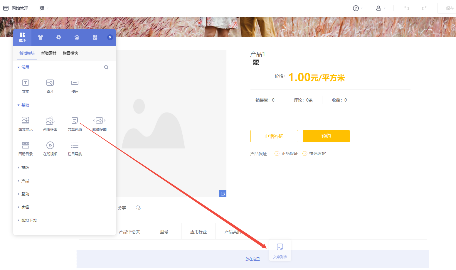 以产品为例子,假如在“产品1”页面我们添加了一个模块,那么在所有产品的页面都会自动出现该模块。