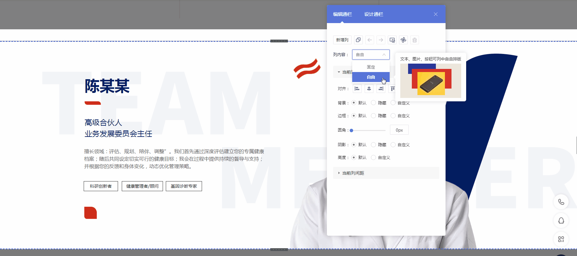 常规通栏现支持将列设置为“自由列”,满足更灵活的排版需求,同步上线8个使用自由列搭建的高质量新素材供直接复用。