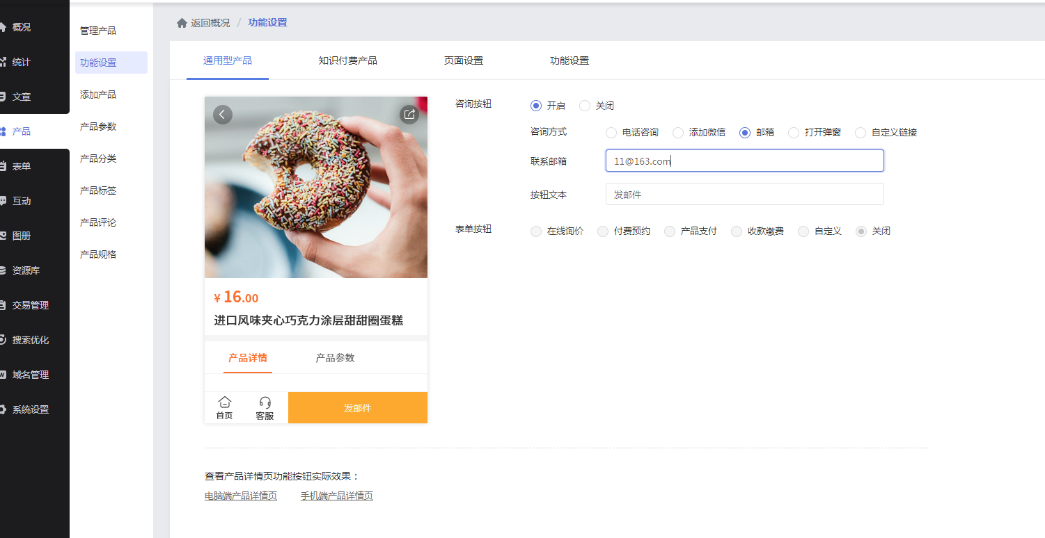 标准站点(电脑端与手机端)的咨询方式新增了邮箱展示选项,进一步丰富商家的联系与曝光渠道,方便客户快速取得沟通。